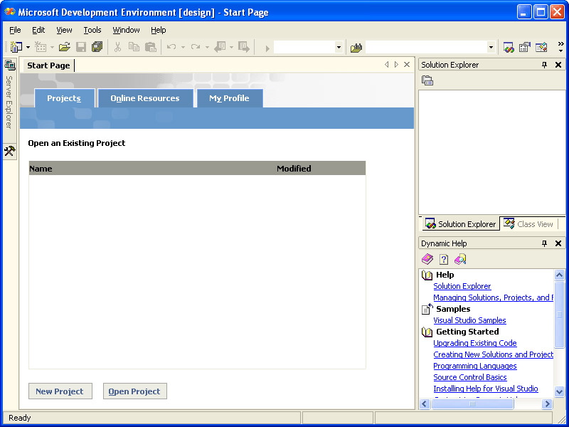 You’ll begin your tour by starting the Visual Studio .NET IDE. Next, you’ll learn about some of the features of the IDE designed to help you get started. You’ll finish this section by learning how to open an ASP.NET Web application project.