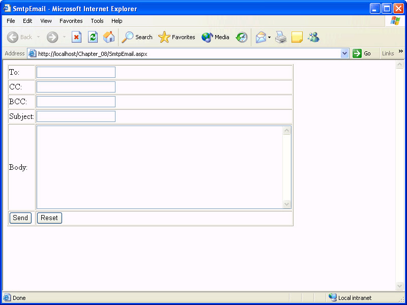 Open the file SmtpEmail.aspx created earlier in this chapter.