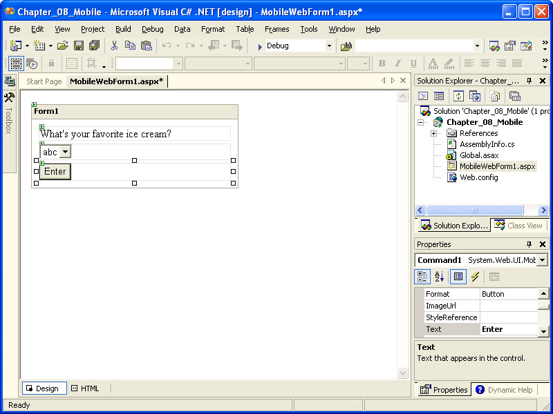 To see how the ASP.NET mobile controls work, let’s re-create the“Favorite Ice Cream” page using the mobile controls.