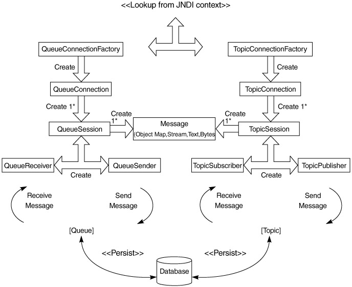 We have taken a high-level view of the different parts of the JMS API. The basic steps, as summarized in Figure 11.10, are: