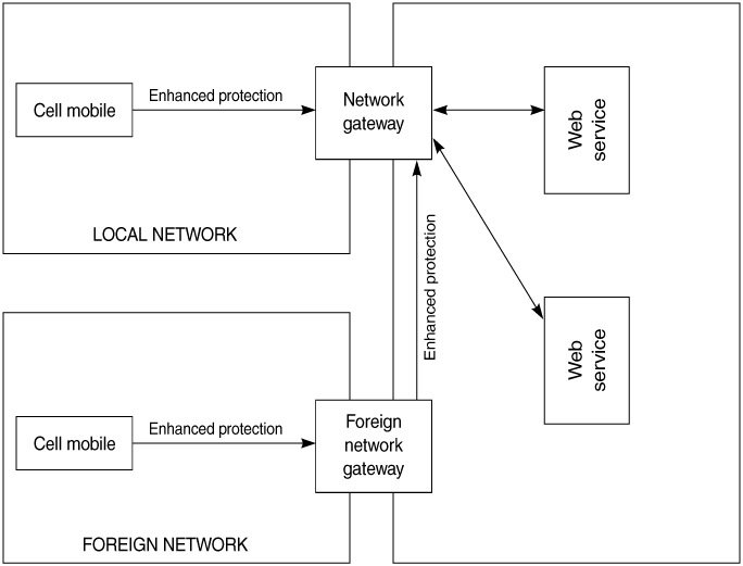 Wireless network operators and their gateways may use SOAP to provide the intermediary functionality for their wireless devices to communicate with Web services. The wireless devices themselves may include unique encryption algorithms. The wireless gateway can alter and/or supplement the security tokens and the message protection. This security model is also valid when the wireless device is roaming on a foreign network.
