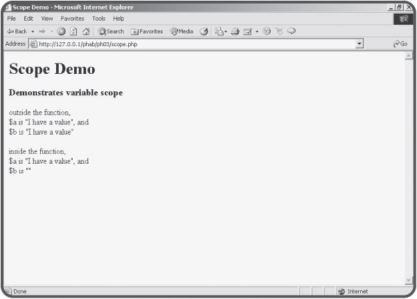 To illustrate the notion of global variables, take a look at the scope demo, shown in Figure 3.14.