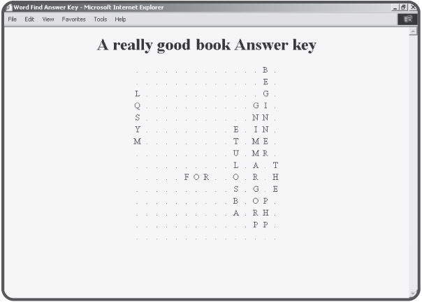 If desired, the program can also generate an answer key based on the puzzle. This capability is shown in Figure 5.3.