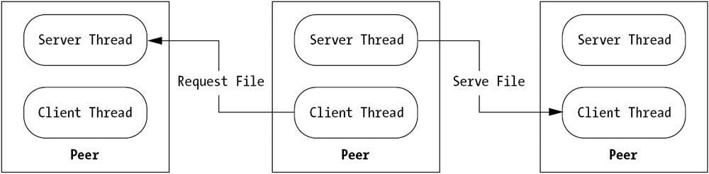 Remember, in a single interaction, the parts of a peer-to-peer system are not equivalent. One peer will take the role of a server, while the other acts as a client. However, over a longer time frame, each peer has the capability to play different roles.
