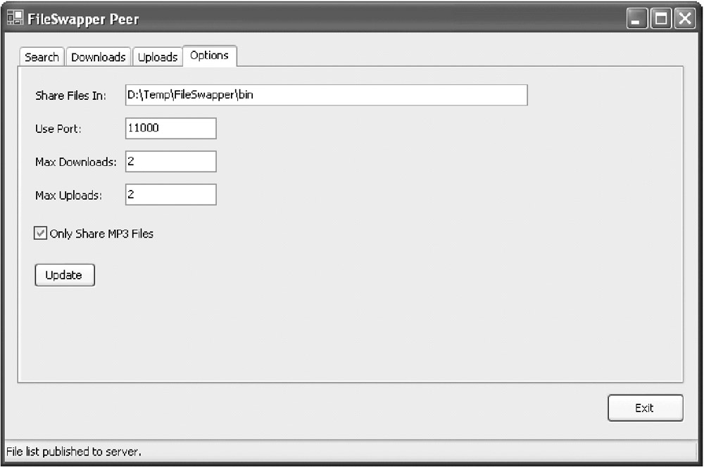 When the user clicks the Update() button, these settings are saved in the registry. The peer then logs out and logs back in to the discovery service.